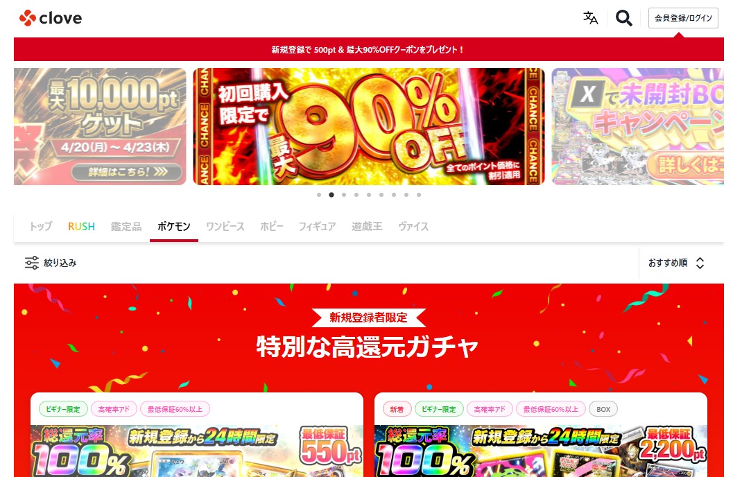 Cloveオリパは、幅広いジャンルと高還元系ガチャが強みのオンラインオリパ。