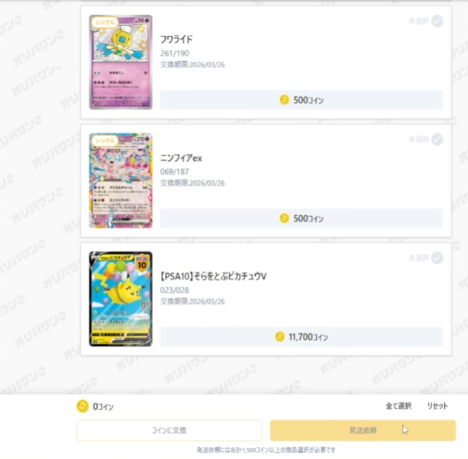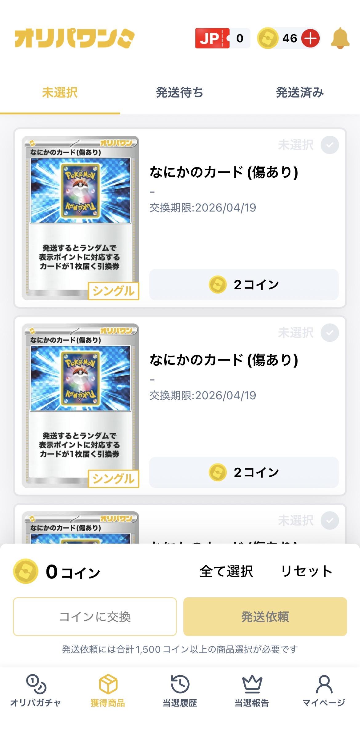 一番の理想は、無料配布分で当てたカードをポイント化し、そのポイントをコツコツ増やして最終的に欲しいカードを実物で手に入れること。