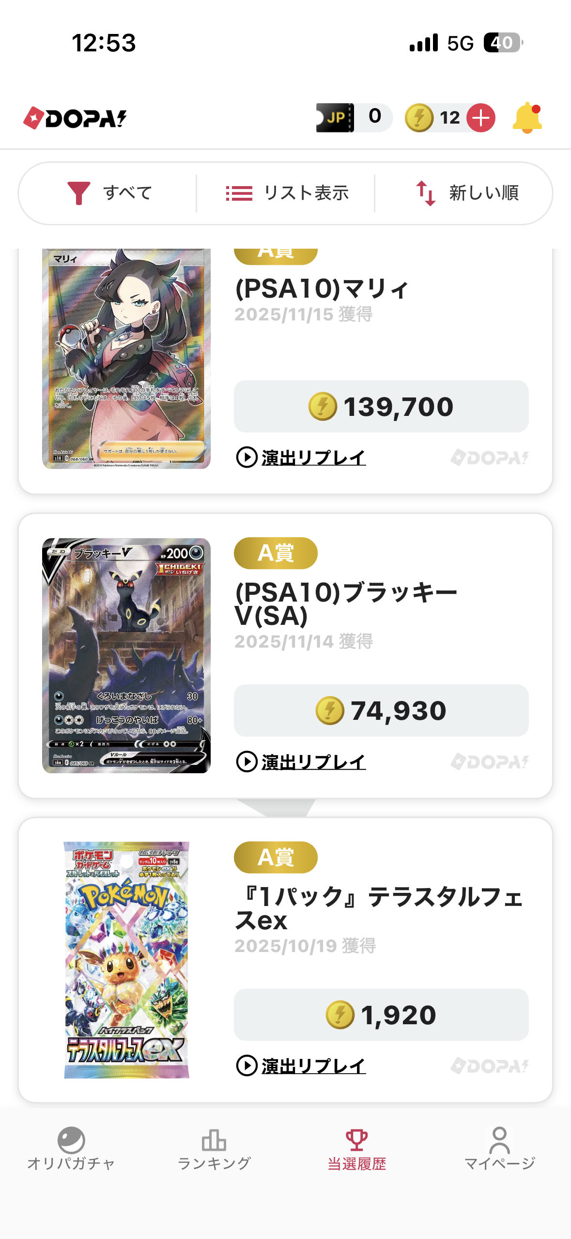 普段はカードの相場やPSAの情報を追うのがメインですが、たまにガチャ感覚で運試しをしたくなって、3000円〜5000円くらいポイントをチャージして使っています。 ここの良いところは、とにかくUIが直感的で、演出のワクワク感が強いことですね。当たり・ハズレの率は、正直に言うとトップレアを引くのは至難の業ですが、アド損しても最低限のポイント還元があるので全ロスして終わりにならない安心感はあります。 発送は過去に一度A賞を引いた時に依頼しましたが、3日後には発送通知が来て、梱包もしっかりしていました。他のDOPAとかに比べると、個人的には引き際が判断しやすいシンプルさが気に入っています。
